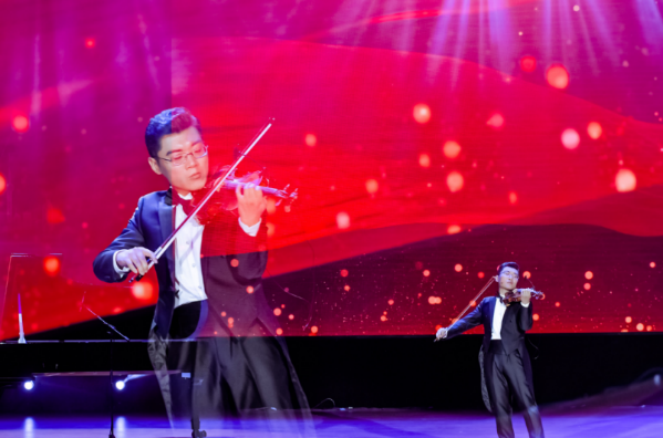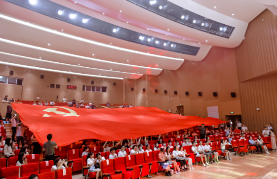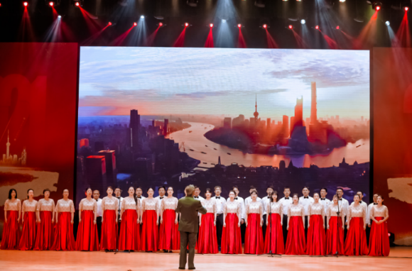 歌声飞扬,高唱百年光辉岁月;旋律激昂,谱写时代华美乐章。在全体观众撑起党旗,合唱《没有共产党就没有新中国》的嘹亮歌声中文艺展演活动步入终章。