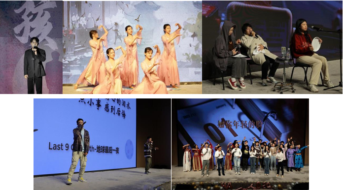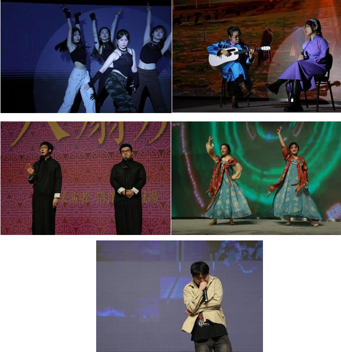 晚会在牟正旸、孙佳莹、徐子然、龙奕帆四位主持人的新年贺词中拉开序幕。高研院的罗滟如、王文琪等六位同学带来的开场舞《Wiki You&Me》,释放了青春的热情与能量,瞬间点燃全场。他们将激情似火的hip-hop与优雅冷艳的爵士结合,完美呈现了一场独特的冰与火之舞。晚会第一乐章“元夜 绮思”在上海药物所刘容君和雅儒同学的弹唱《乌兰巴托的夜》中拉开帷幕,带我们领略了乌兰巴托之夜的宁静和神秘。在相声的世界里,八扇屏成为了一个传奇,上科大相声社的苏冠阳和隋洋同学表演的《八扇屏》,带领每一位观众置身笑海。高研院的姚佳汝和杨晨璐同学带来舞蹈串烧《穿越时空遇见你》,将现代元素巧妙地融入到传统舞蹈中,让我们感受到时光的流转和艺术的传承。上海硅酸盐所的王缓同学和高研院的王文琪、罗滟如同学带来的说唱歌曲《会魔法的老人》,携手现场观众暂离喧嚣,穿梭熙熙攘攘的人群,一同去寻找那未知的奇妙。